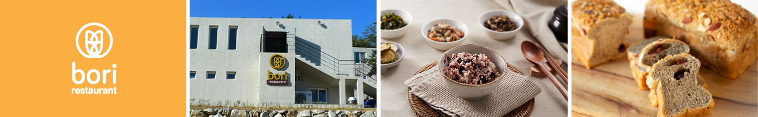 자연생활교육원의 레스토랑 보리(bori)는 칠보산 소나무 숲의 녹음을 바라보며 자연 친화적이고, 신선한 재료로 가장 자연스럽게 조리를 하여, 거하게 먹어도 거북하지 않고 속이 편한 힐링 푸드를 맛볼 수 있는 곳입니다.